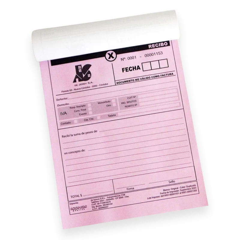 Rango de precios: desde $ 7.730,00 hasta $ 152.100,00Talonarios de Facturas y Recibos Los talonarios de facturas y recibos son documentos impresos que permiten a las empresas registrar y proporcionar comprobantes de transacciones comerciales. Pueden ser fiscales, cumpliendo con la normativa tributaria vigente, o no fiscales, utilizados para operaciones que no requieren un registro formal ante la autoridad fiscal. Características principales Dimensiones: Standard…