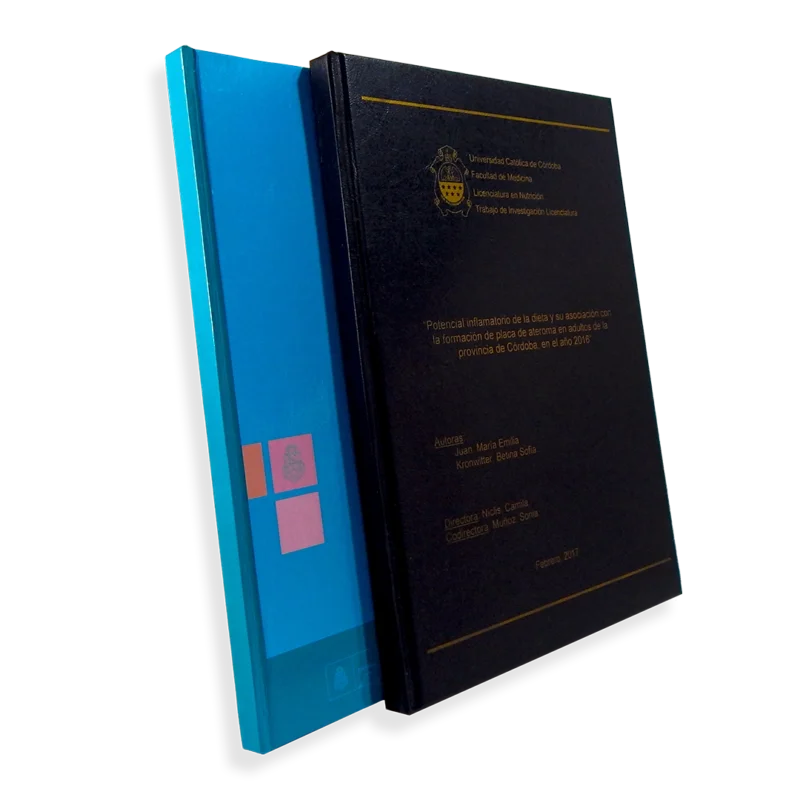 Encuadernación cocida con tapa dura ploteada o de cuerina grabada (colores disponibles: azul, rojo, verde, negro), letras en dorado o plateado. Tamaños estandar a5, a4 y a3. Ideal para libros o tesis. Para poder presupuestar el interior del mismo no dudes en enviarnos tu archivo.